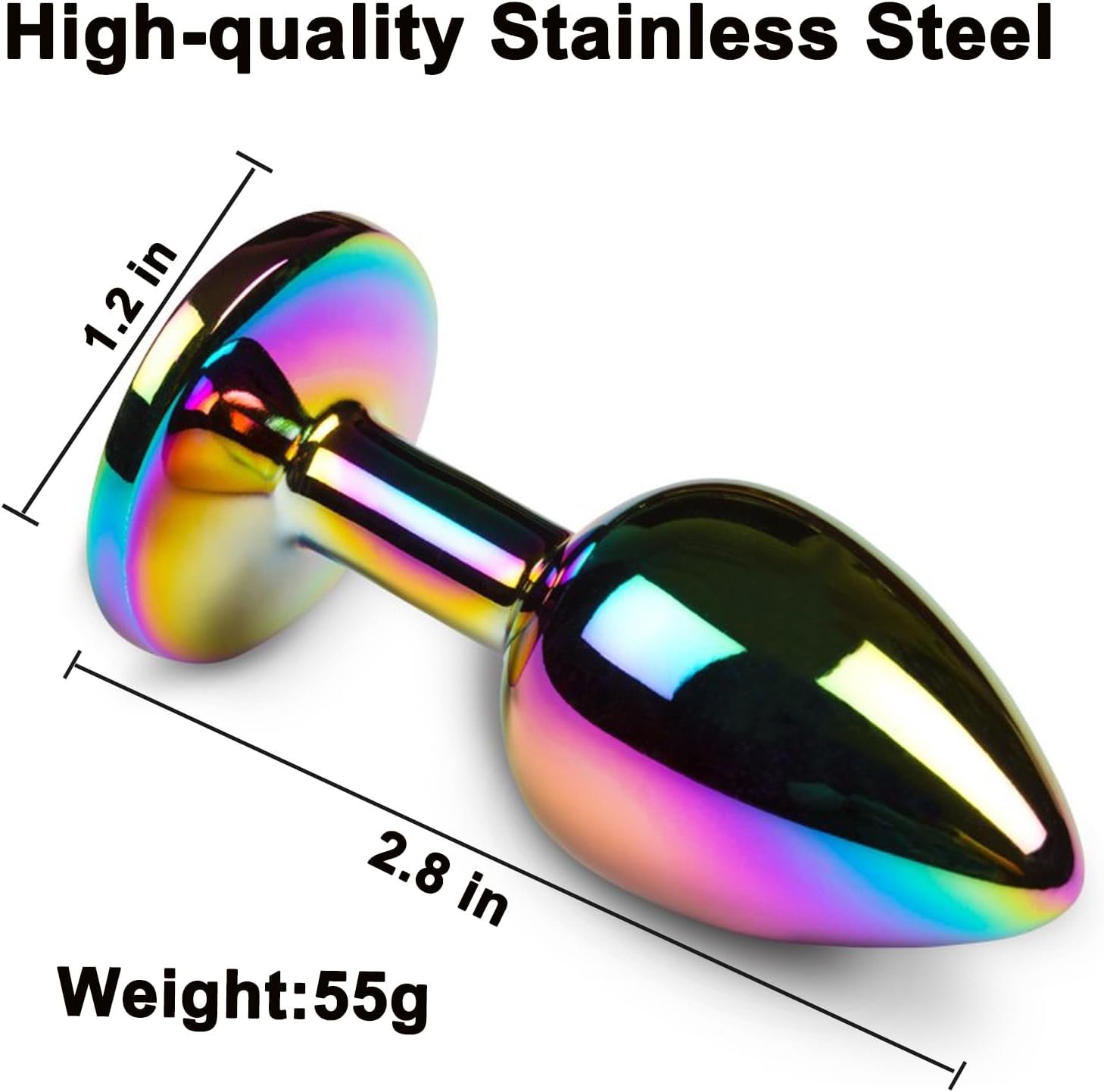 Multicolor alüminyum plug, estetik ve fonksiyonelliği bir araya getiren özel bir tasarıma sahiptir. 8 cm uzunluğu ve 3,5 cm çapı, dengeli bir dolgunluk hissi sunar. Bununla birlikte yalnızca 46 gram ağırlığında olması, uzun süreli kullanımlarda bile konforu korur. Yuvarlatılmış uç formu yerleştirmeyi kolaylaştırır ve rahatsızlık hissini azaltır. Parlak multicolor yüzey ise farklı ışık koşullarında dikkat çekici bir görsellik sunar.