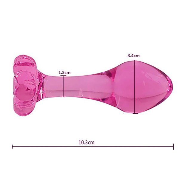 Ürün 9 cm boyunda ve 3,2 cm genişliğindedir. Bu ölçüler, hem yeni başlayanlar hem de deneyimli kullanıcılar için idealdir. Pembe renkli cam plug, üzerinde zarif çiçek figürleriyle estetik ve çekici bir görünüme sahiptir. Ergonomik tasarımı, kullanıcının ürünü rahat kontrol etmesini sağlar ve kullanım esnasında maksimum konfor sunar. Ayrıca, camın doğal sertliği sayesinde şekli kolayca bozulmaz. Arka kısımdaki çiçek detayları, ürüne feminen ve zarif bir dokunuş katarak kullanımı keyifli hale getirir.